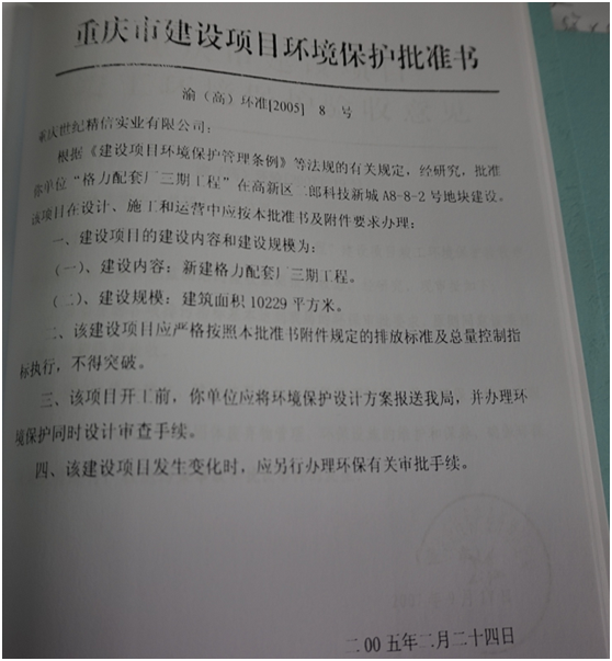 格力電器配套廠三期工程環境影響報告表的環評批復